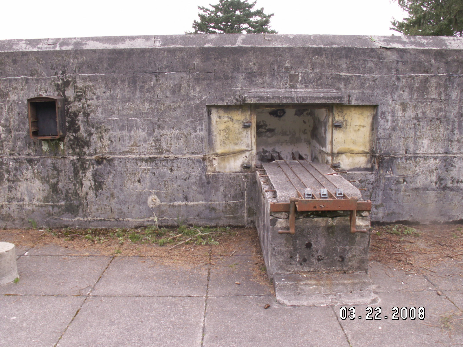 The top part of the Battery Murphy first gun emplacement shell hoist where the shells would roll out. The gun crew would then place the shell on a shell cart to be transported the gun.