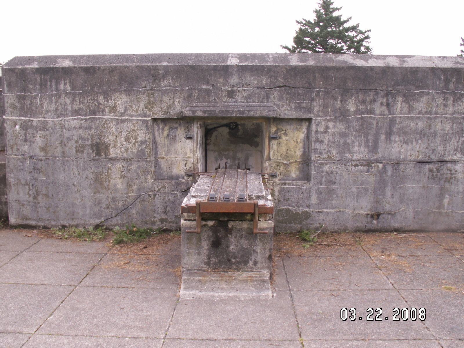 The top part of the Battery Murphy second gun emplacement shell hoist where the shells would roll out. The gun crew would then place the shell on a shell cart to be transported the gun.