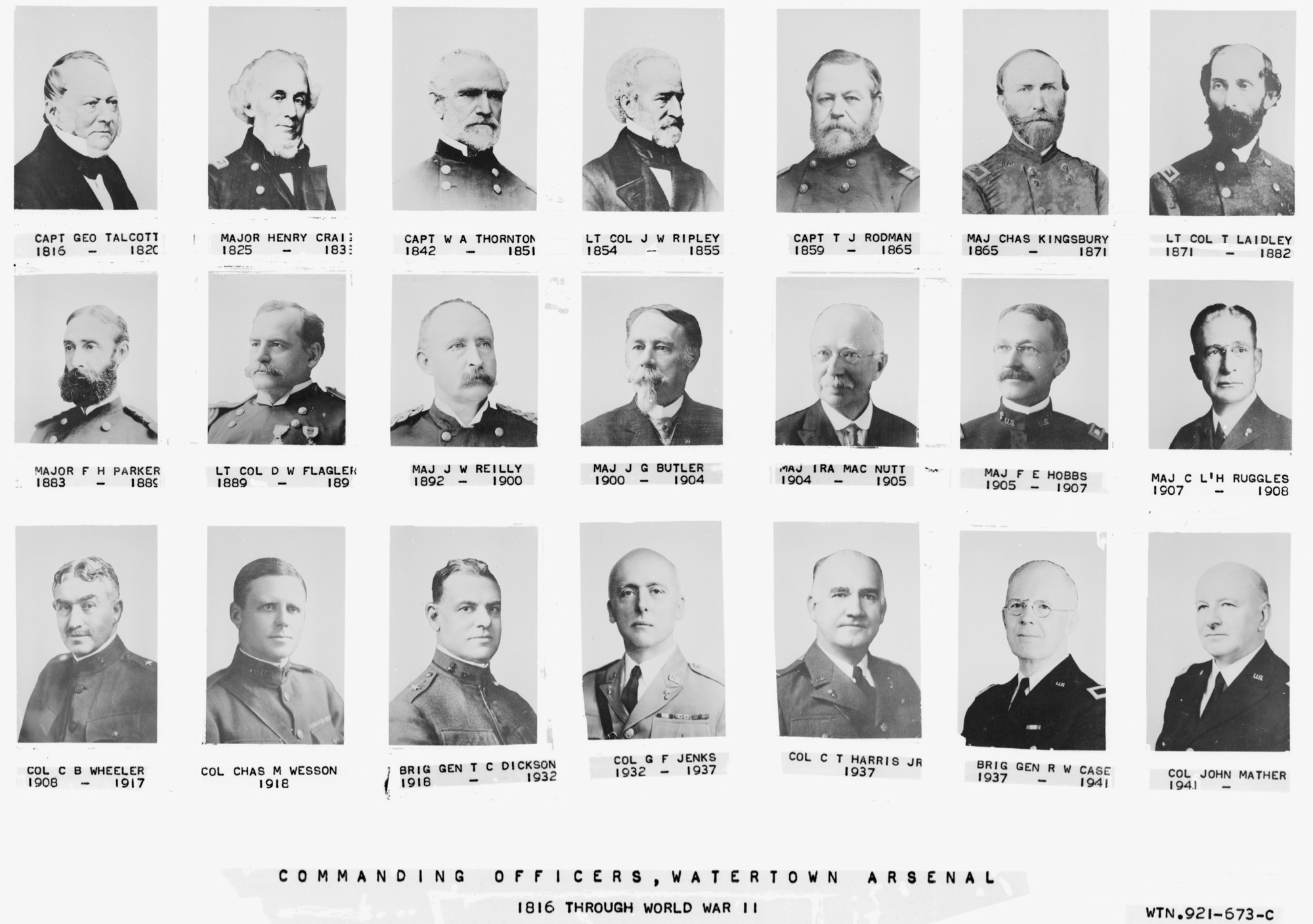 Watertown Arsenal Commanding Officers thru WWII, public domain Mass Digital Commonwealth