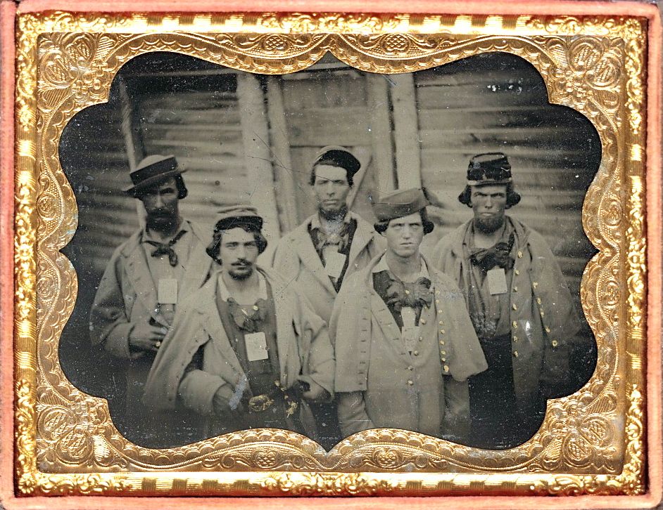 Five Confederate Prisoners at Camp Douglas, public domain This image is available from the United States Library of Congress, Prints and Photographs Division under the digital ID 32610v. No known copyright restrictions.