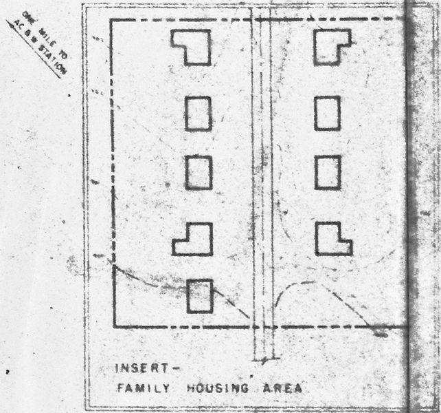 Custer AFS Radar Site Housing Area Plan circa 1956. This image is available from the United States Library of Congress, Prints and Photographs Division under the digital ID 340267pu. No known copyright restrictions.