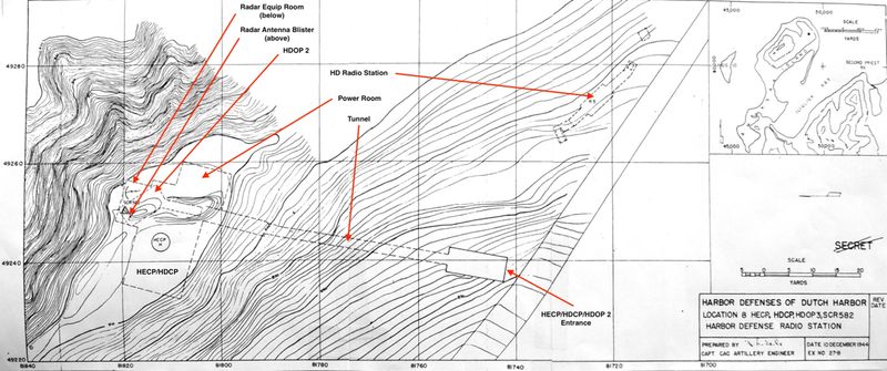 Ulakta Head WWII SCR 582 Radar Site and HECP/HDCP/HDOP 2 Plan. (Annotated), public domain,