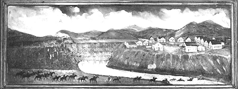 Fort Fred Steele, 1868. Oil Painting by Aldrich, Wyoming State Archives