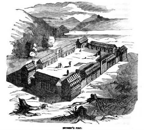 Fort Seybert 2, public domain, Wikipedia 1851 wood engraving of Fort Seybert, published by Wills De Hass,