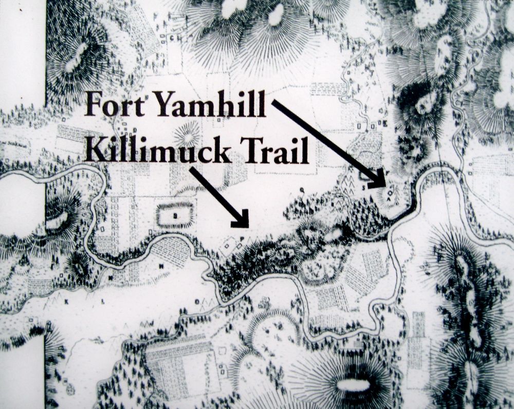 Fort Yamhill Sign showing location of Killimuck Trail. Photo by John Stanton, 1 Aug 2006
