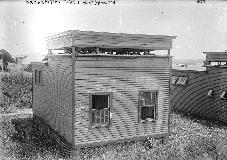 Fort Hamilton Observation Tower, Jun 1908 This image is available from the United States Library of Congress, Prints and Photographs Division under the digital ID ggbain.01930. No known copyright restrictions.
