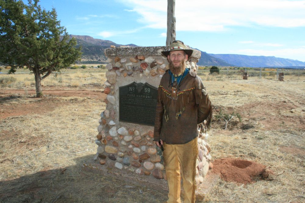 Fort Harmony Marker and James Lee, 4th Generation Descendant of John Lee, photo by John Stanton 24 Oct 2009