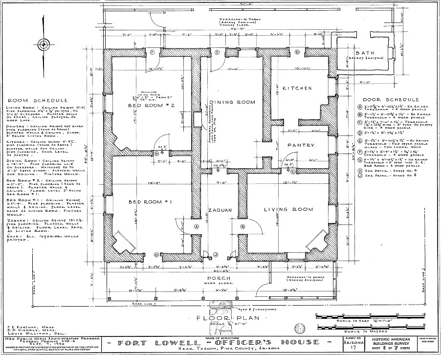 Fort Lowell Officer House Plan, public domain, This image is available from the United States Library of Congress, Prints and Photographs Division under the digital ID http://www.loc.gov/pictures/item/az0063.sheet.00001a/. No known copyright restrictions.