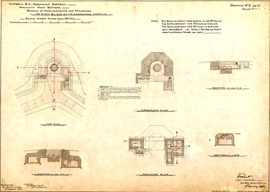 Fort Macaulay Gun Emplacement Plan 1903, Canadian Library and Archives, Online MIKAN no. 4143184