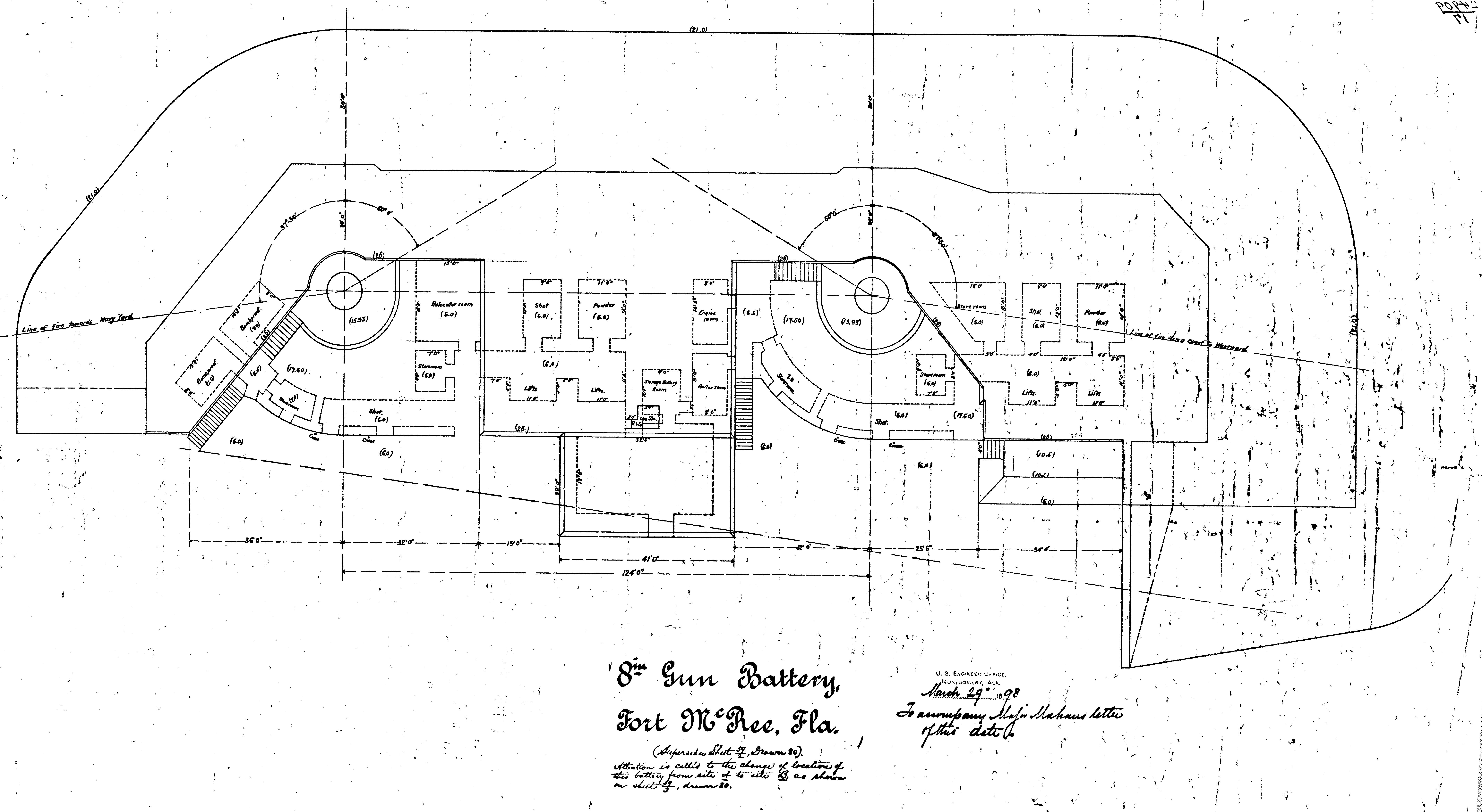 Fort McRee, Battery Slemmer 1898 Plan, NARA CDSG