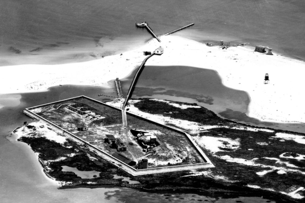 Fort McRee, remains of the Old Fort on the edge of the Beach, public domain CDSG Digital Library - NARA Aerial Photographs Collection