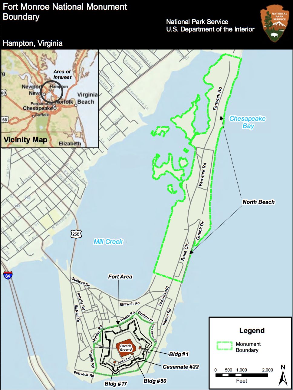Fort Monroe National Monument Boundary Map, public domain NPS
