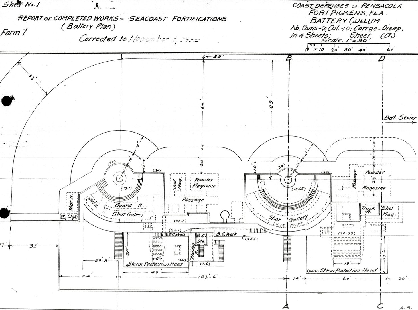 Fort Pickens, Battery Cullum Plan, NARA