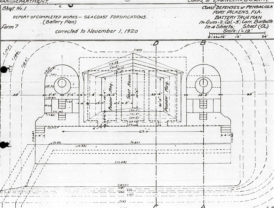 Fort Pickens, Battery Trueman Plan, NARA