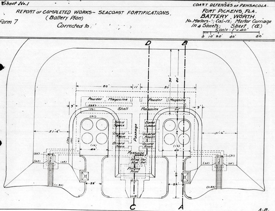 Fort Pickens, Battery Worth Plan, NARA