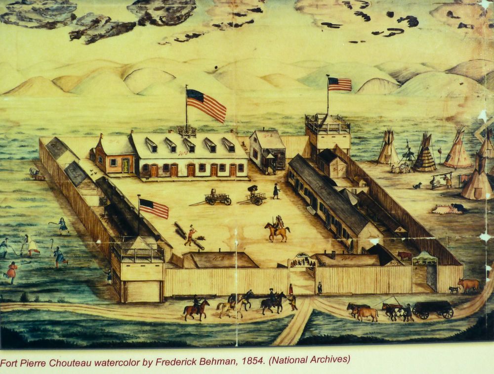 Fort Pierre Chouteau Sketch from Park Sign, photo by John Stanton 27 Sep 2010