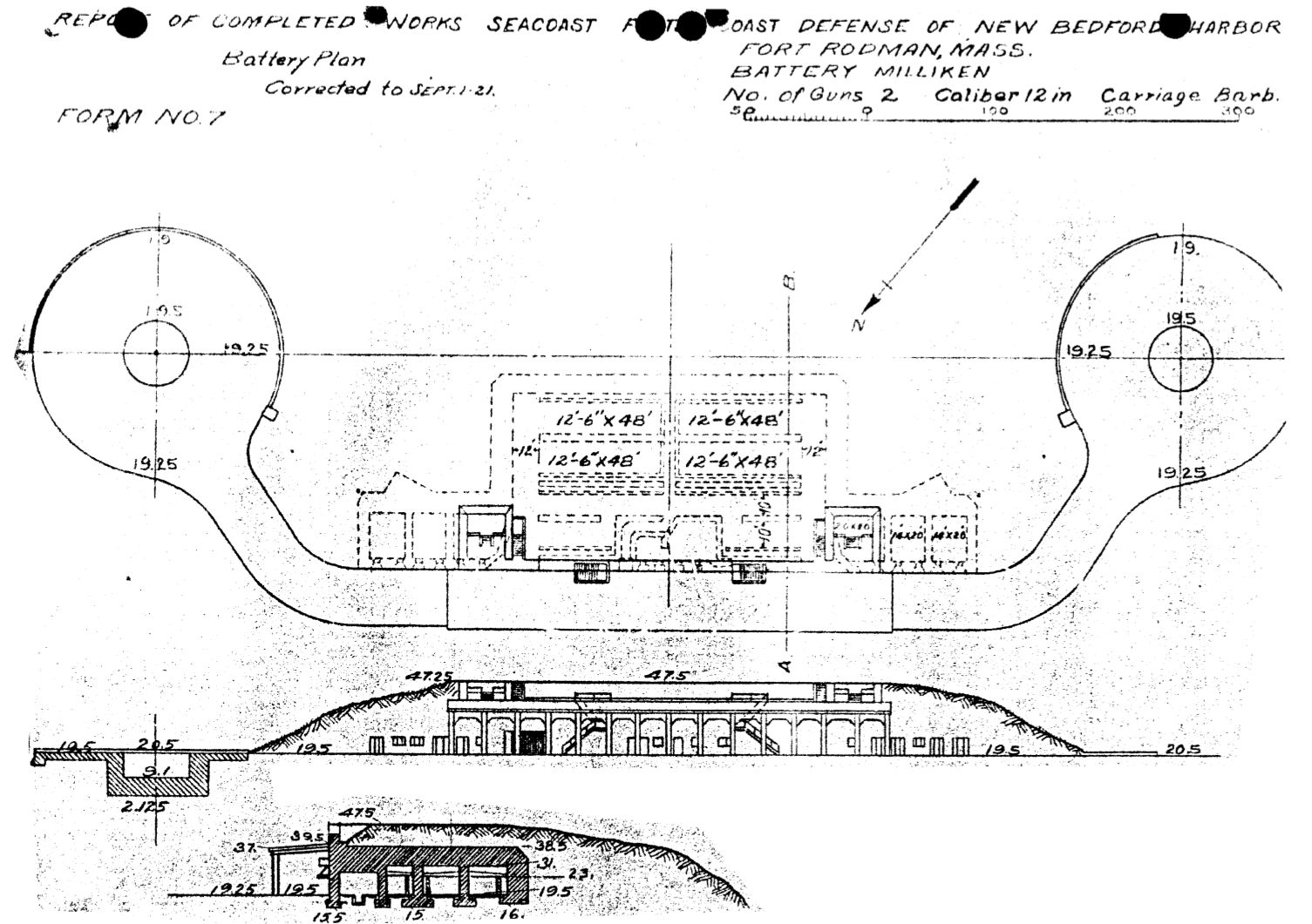 Fort Rodman, Battery Milliken Plan, NARA
