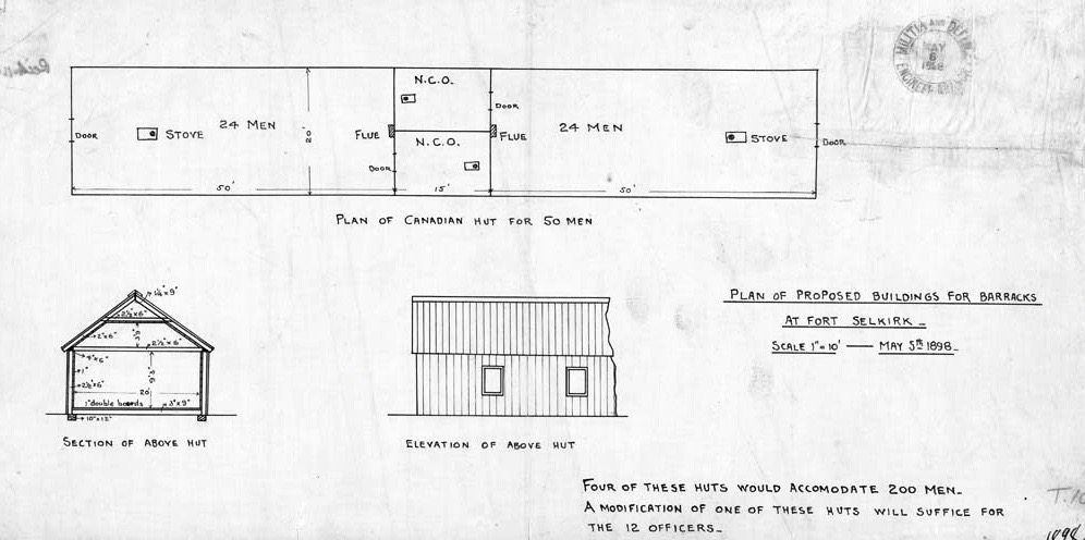 Fort Selkirk Yukon Field Force Barracks Plan, public domain Canada Archives