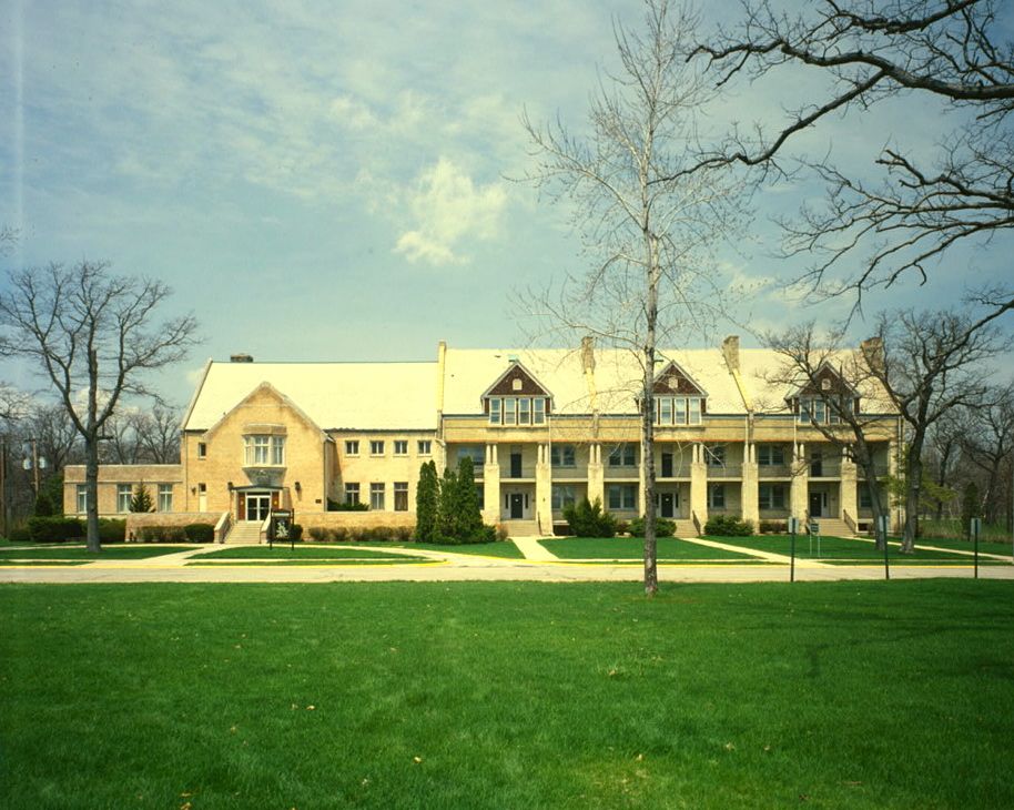 Fort Sheridan Bachelor Officer's Quarters and Mess, public domain This image is available from the United States Library of Congress, Prints and Photographs Division under the digital ID 572088cv. No known copyright restrictions.