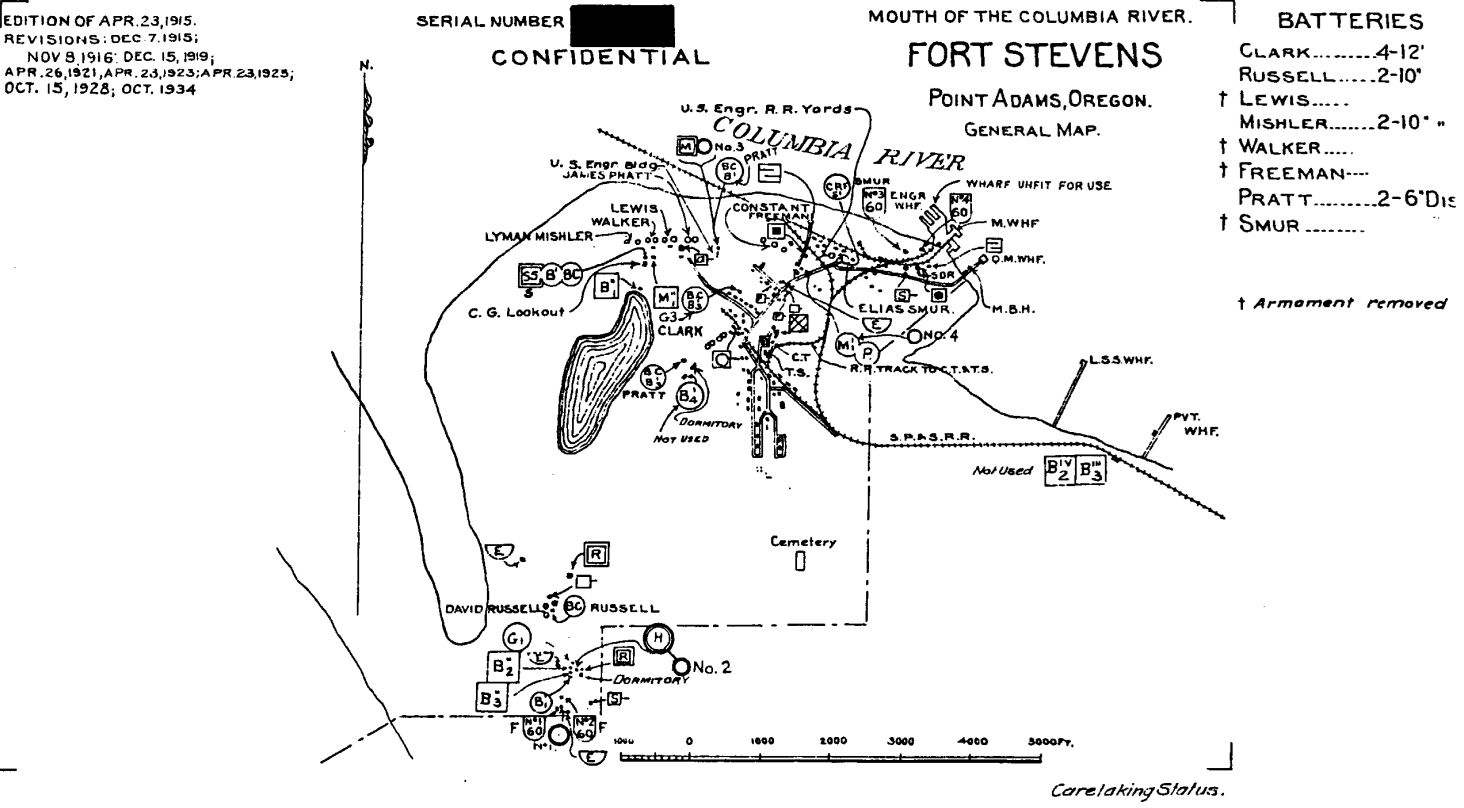 Fort Stevens 1934 plan, NARA