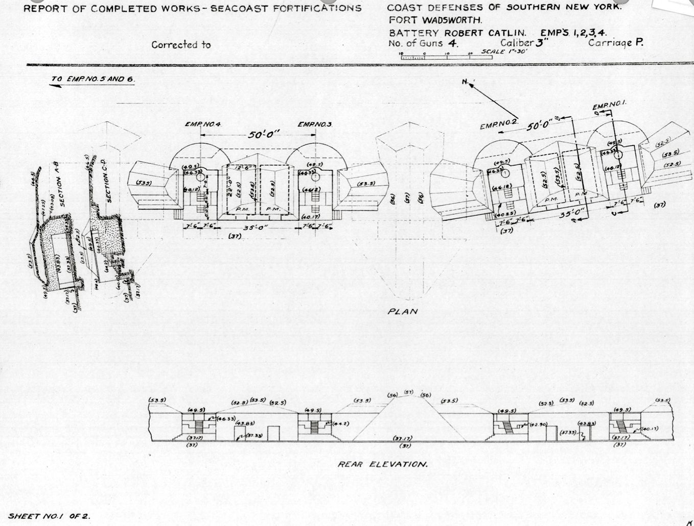 Fort Wadsworth, Battery Catlin Plan, NARA