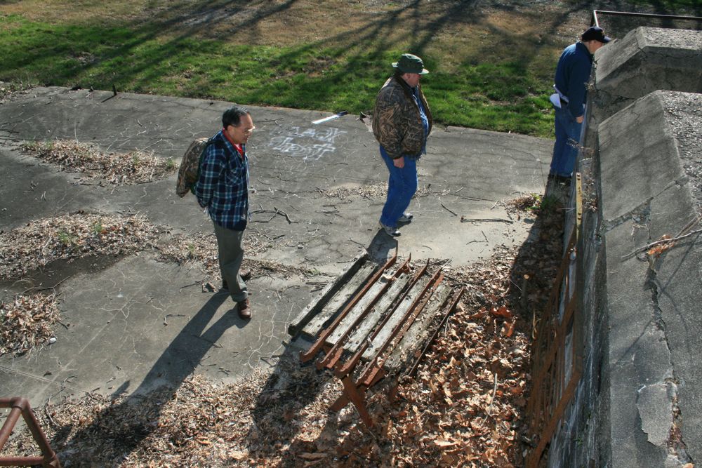 Fort Washington, Battery Wilkin, Gun Emplacement #1 Shell Tray from Above, photo by John Stanton 4 Apr 2009