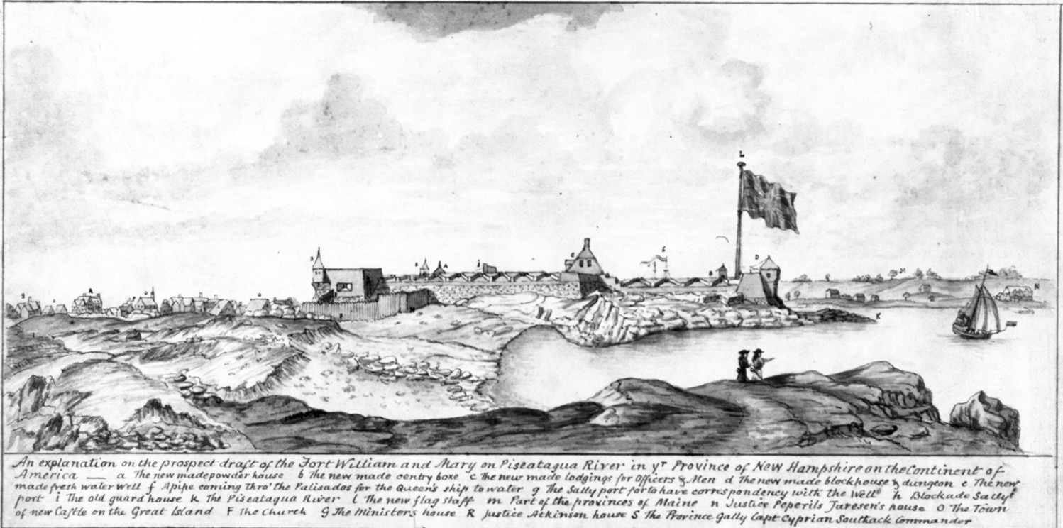 Fort William and Mary Pictorial Plan circa 1705, public domain This image is available from the United States Library of Congress, Prints and Photographs Division under the digital ID 3a51296u. No known copyright restrictions.