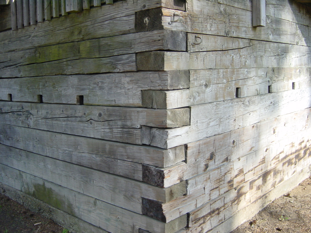 Fort Yamhill Blockhouse logs, Dayton, OR, JStanton, Aug 2005