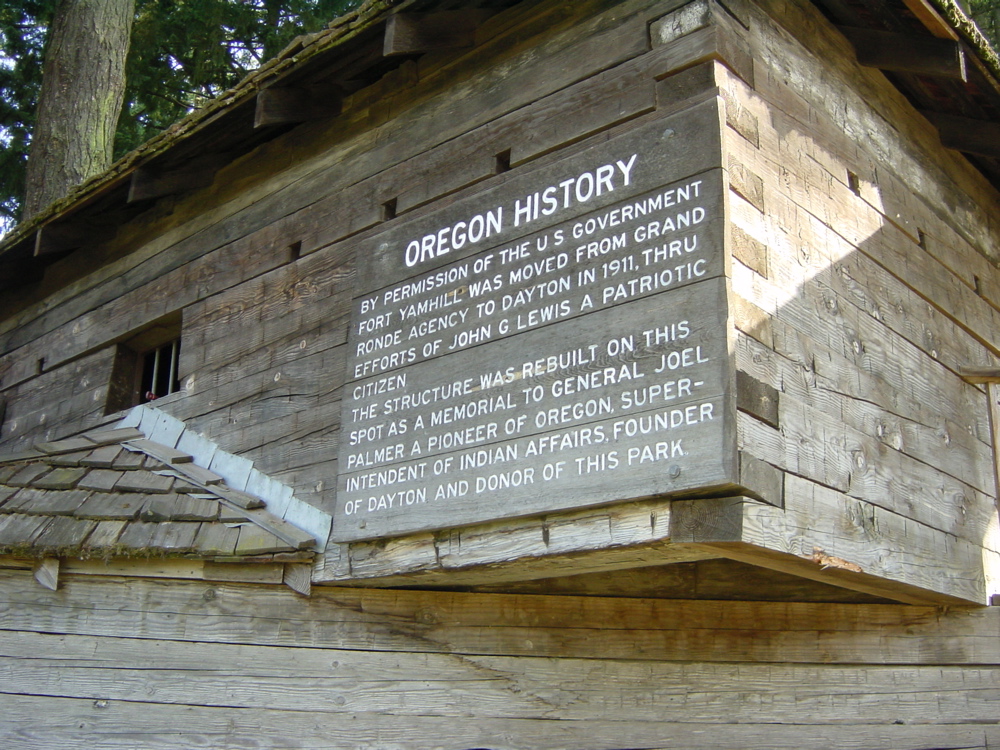 Fort Yamhill Blockhouse sign, Dayton, OR, JStanton, Aug 2005