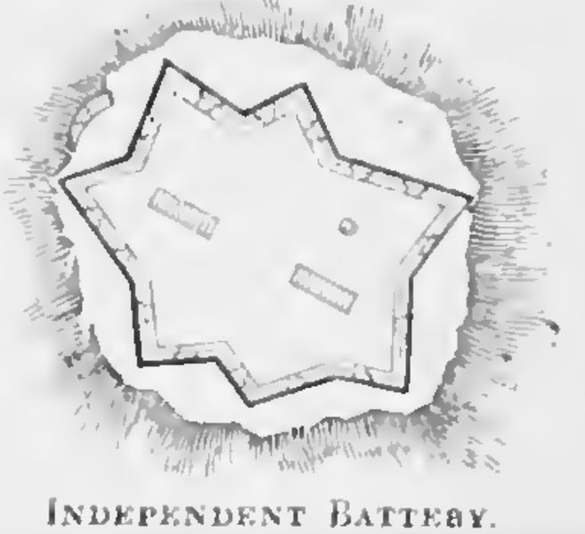 Fort Bunker Hill (Independent Battery), public domain Lossing, Benson J., Pictorial Field-Book of the Revolution Vol. II, New York, Harper and Brothers, 1859, Internet Archive, page 593.