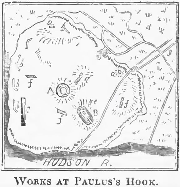 Paulus Hook Works, public domain Lossing, Benson J., Pictorial Field-Book of the Revolution Vol. II, New York, Harper and Brothers, 1859, Internet Archive, page 622.