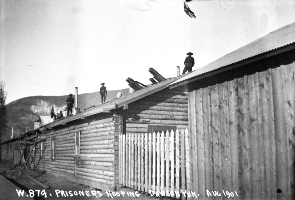 Prisoners Roofing Buildings on Fort Herchmer, public domain Canada Archive