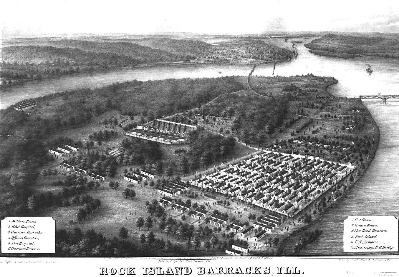 Rock Island Barracks, public domain This image is available from the United States Library of Congress, Prints and Photographs Division under the digital ID . No known copyright restrictions.
