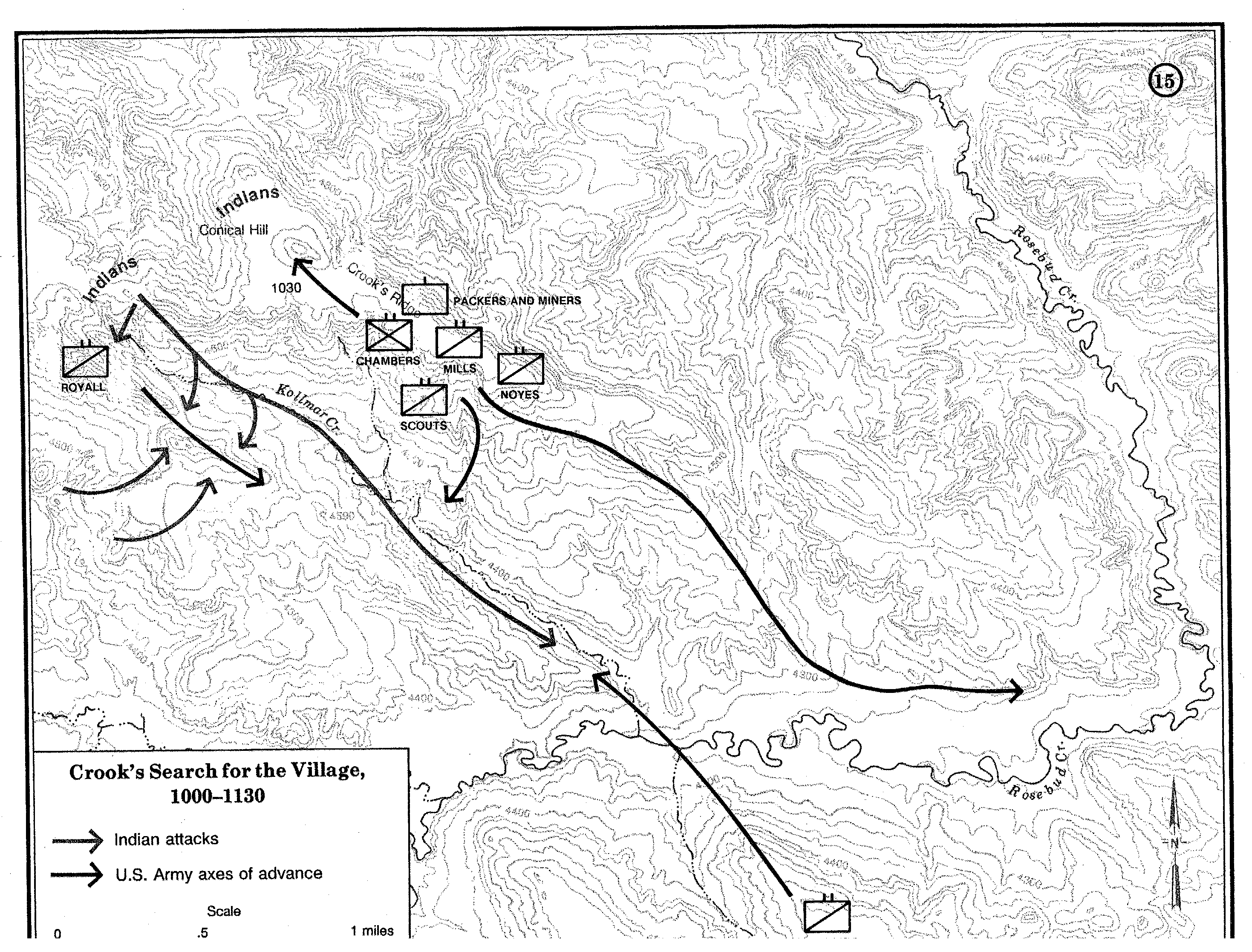 Map 15. The Battle of the Rosebud: Crook's Search for the Village, 1000-1130