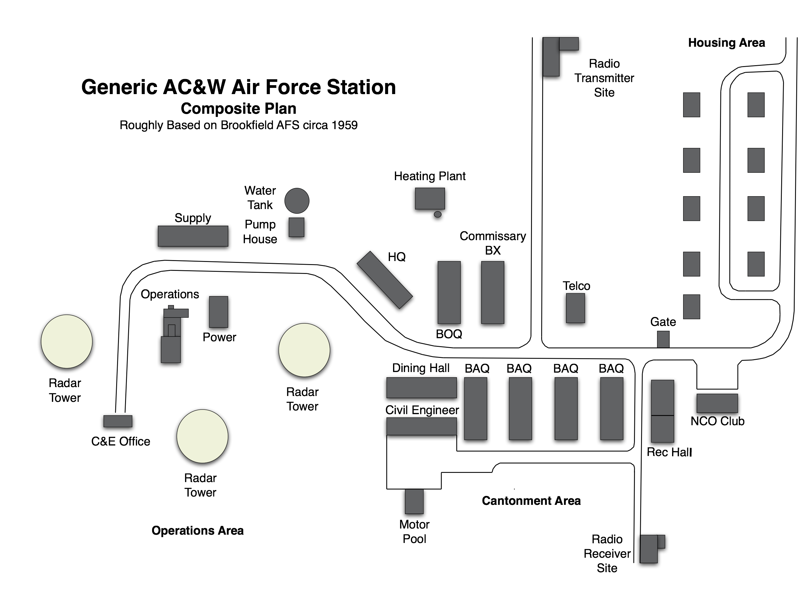 | current | 08:37, 31 March 2017 | 2,639 × 1,945 (382 KB) | John Stanton (talk | contribs) | Typical AC&W Air Force Station circa 1959, drawing by John Stanton 31 Mar 2017 |