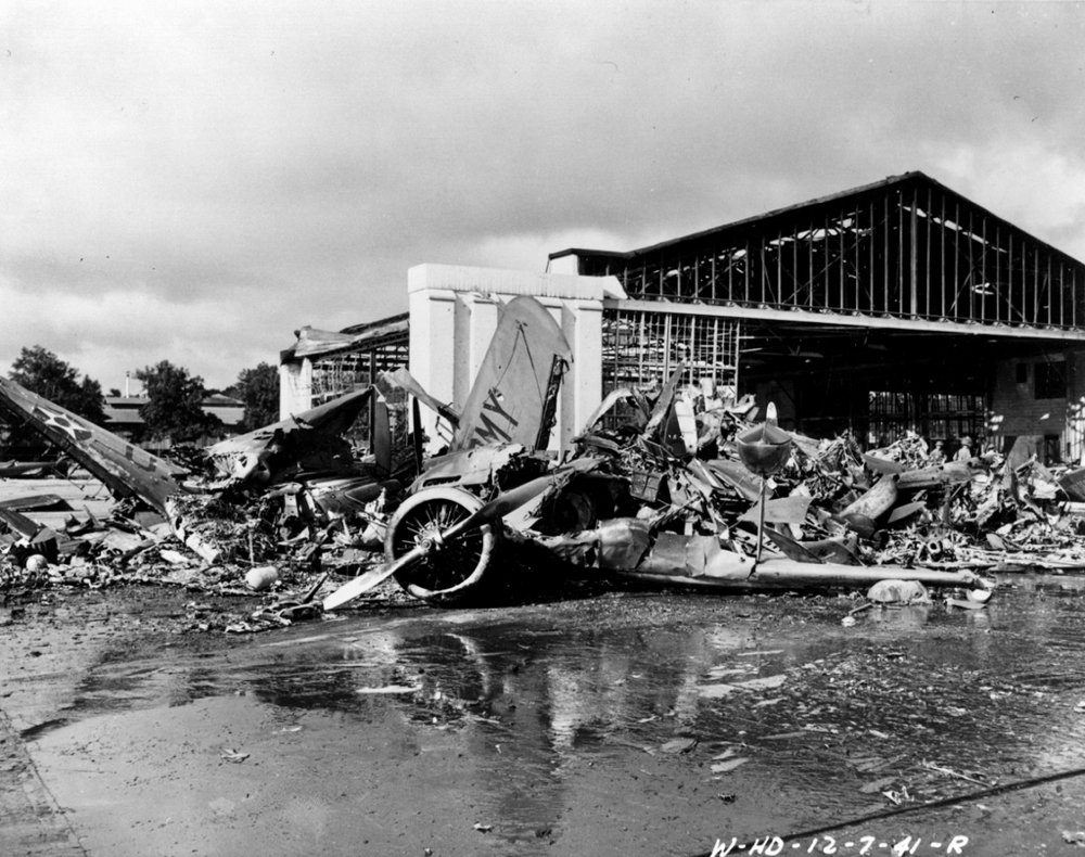 U.S. Army aircraft destroyed by Japanese raiders at Wheeler Air Field, public domain Naval History and Heritage Command