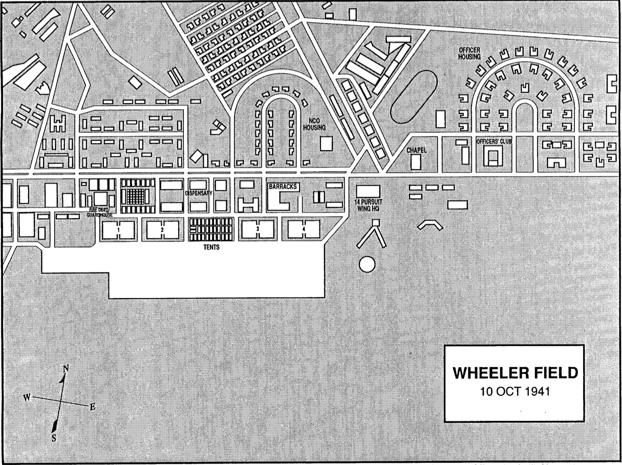 Wheeler Field Plan, October 1941, public domain Arakaki, Leatrice R. & Kuborn, John R, 7 December 1941: The Air Force Story, Pacific Air Forces Office of History, Hickan Air Force Base, Hawaii, 1991, Pdf, page 42