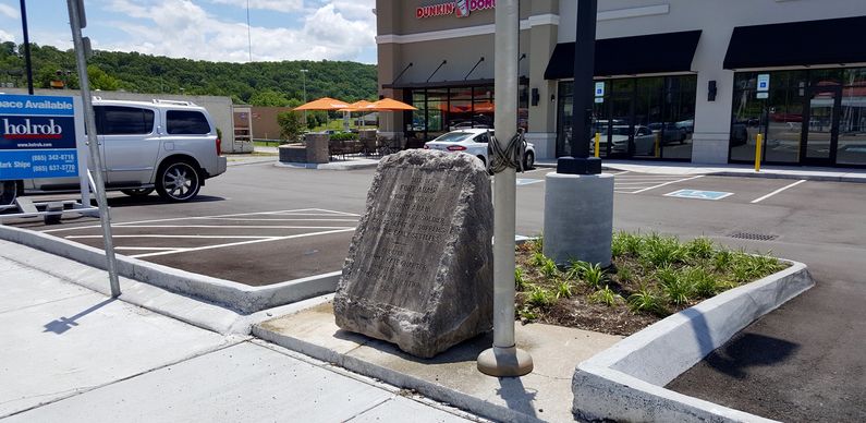 A roadside stone marker tablet is in place. A regular state roadside marker was in place but is now missing (May 2016). One article indicates that the fort site was just north of Arby's between the creek and the road. The map below shows the marker location and the indicated fort location site.