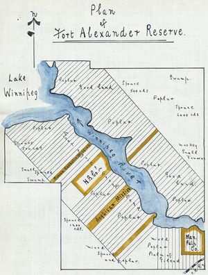 Fort Alexander (5) (1792-1940) - A Hudson's Bay Company (HBC) fur trading post and fort first established as Pointe au Foutre House circa 1795. Located on the Winnipeg River in present day Manitoba, Canada. Abandoned circa 1801. Reestablished in 1822 within the former North West Company (NWC) Fort Alexander. Abandoned circa 1940. HistoryA Hudson's Bay Company fur trading post and fort first established in 1795 on the Winnipeg river near present day Pine Falls, Manitoba. Pointe au Foutre HouseBuilt by the Hudson's Bay Company to counter the nearby North West Company Fort Bas-de-la-Rivière. Originally located upriver on the north bank and known as Pointe au Foutre House. Palisaded in 1796. Relocated downstream in 1798 closer to the NWC post. Probably abandoned circa 1801. Fort AlexanderAlexander MacKay rebuilt the NWC post in 1807. Beginning in 1808 the NWC post was known as Fort Alexander. The HBC returned to the site in 1822 after the merger of the HBC and NWC and took over Fort Alexander. Probably rebuilt in 1857. The post was garrisoned by the Canadian Militia in 1870 during the Red River Rebellion. Closed circa 1940.