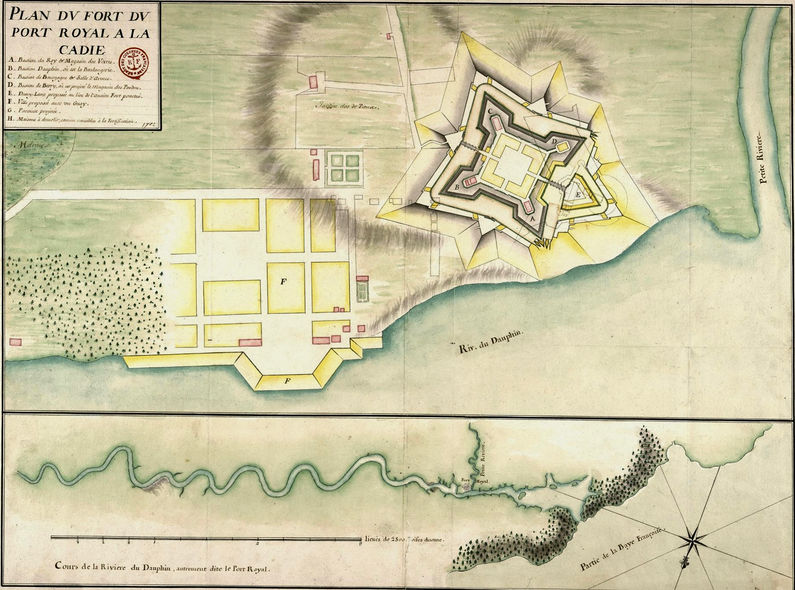 HistoryWilliam Alexander established a “New Scotland” settlement and Charles Fort at what was then Port-Royal, Nova Scotia in 1629. The Treaty of Saint-Germain-en-Laye in 1632 returned New France (Quebec, Acadia and Cape Breton Island) to French control after the Scots had seized it in 1629. The result at Port-Royal was the abandonment of Charles Fort in 1633. Acadian Civil War (1635–1654)In 1636, Charles de Menou D’Aulnay brought French Acadian settlers to the area the Scots had abandoned, making the fort his Port-Royal headquarters. His rival Charles de Saint-Étienne de La Tour had established Fort La Tour across the Bay of Fundy in 1631 and the two became locked in a conflict known as the Acadian Civil War. The war ended in 1650 with the drowning death of d’Aulnay and the marriage of La Tour to d’Aulnay's widow. King William's War (1689-1697)Captured by English troops under Major Robert Sedgewick in July 1654. The fort was no longer in use by 1686, and the English easily captured the town again in May 1690. It was returned by treaty in 1697 and the French-governed Acadia from successive forts at Port-Royal until 1710. Queen Anne's War (1702-1713)During Queen Anne's War, the French constructed a new Port-Royal Fort built over the traces of the old forts. Construction of the new fort was supervised by Pierre-Paul de Labat, a French officer, and engineer, who also designed the fort. Labat had trained under the great military engineer of European fortifications, Sébastien Le Prestre de Vauban. Labat created a Vauban style star-shaped fort with four bastions connected by curtain walls, with a ravelin and seaward battery. The new fort withstood British attacks in 1704 and 1707. The south magazine was built in 1708 and is now the oldest remaining detached magazine from the British colonial period. The British captured the fort a final time in October 1710, renamed it Fort Anne, and renamed the adjoining settlement to Annapolis Royal. From 1713 to 1749, the British governed Nova Scotia from the fort. The Deportation of French Acadians from Annapolis Royal and the settlement of New England Planters and Loyalists in their place was organized from the site. Annapolis Royal served as the capital of the province until 1749 when Halifax was established. The last garrison left the fort in 1854.