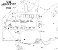 Fort Assinniboine (1) (1879-1911) - A U.S. Army post established in 1879 by Colonel Thomas H. Ruger (Cullum 1633), 18th U.S. Infantry and named for the Assinniboine Indian Tribe. Abandoned in 1911. HistoryEstablished on 9 May 1879 by Colonel Thomas H. Ruger, 18th U.S. Infantry, to prevent the Sioux Chief Sitting Bull from returning to the U.S. from Canada and to control the local Indian population. The fort was a typical open-plan frontier front built primarily for offensive cavalry operations in the aftermath of the massacre of Custer's command at the Little Big Horn. It was the largest fort constructed in Montana. It had long rows of brick buildings and barracks with castle-like towers at the corners surrounding a very large parade ground. At its peak, the fort had 104 buildings mostly of local red brick, and a complement of 36 officers and 453 non-commissioned officers and enlisted men. Five large company barracks lined the northwest side of the parade while the southeast side was lined with officers' quarters and offices. The area behind the enlisted barracks was lined with long brick stables for the cavalry, the band, and the quartermaster. The most famous officer to serve at the Fort was First Lieutenant John J. (Black-Jack) Pershing (Cullum 3126) who arrived in 1896 with the 10th U.S. Cavalry, a black regiment. Pershing went on to teach tactics at West Point and later became General of The Armed Forces during World War I. The post was abandoned in 1911. The vast reservation was divided up into the Rocky Boy Indian Reservation, the Beaver Creek County Park, and the Montana State University, Northern Agricultural Research Center. The main post area is contained in the Research Center area, some buildings remain but all of the barracks, most of the officer's quarters, and all but one of the stables were demolished.