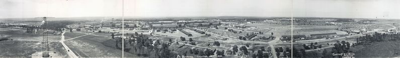 Fort Benning (1918-Present) - A U.S. Army post established as Camp Benning in 1918 during World War I in Columbus, Chattahoochee County, Georgia and Russell County, Alabama. Named for Confederate General Henry Lewis Benning, a native of Columbus, Ga. Renamed Fort Benning on 8 Feb 1922. Active military post. World War IEstablished just before the end of World War I in October 1918 as an basic training post for infantry troops headed overseas. The post became a permanent post in 1920 and was renamed Fort Benning on 8 Feb 1922. An Infantry School of Arms was established that later became the Infantry School. World War IIDuring World War II the post was expanded to 197,159 acres and a capacity for 3,970 officers and 94,873 enlisted men. Training included infantry and airborne units. Four 249' jump towers were built to provide parachute jump training. Current StatusActive military post in Columbus, Chattahoochee County, Georgia. Training areas include the Maneuver Center, the Infantry School and the Armor School. The post has four major cantonment areas: Main Post, Kelley Hill, Sand Hill, and Harmony Church. At the western edge of the Main Post is Lawson Army Airfield which supplies support for the paratrooper training at Fort Benning.