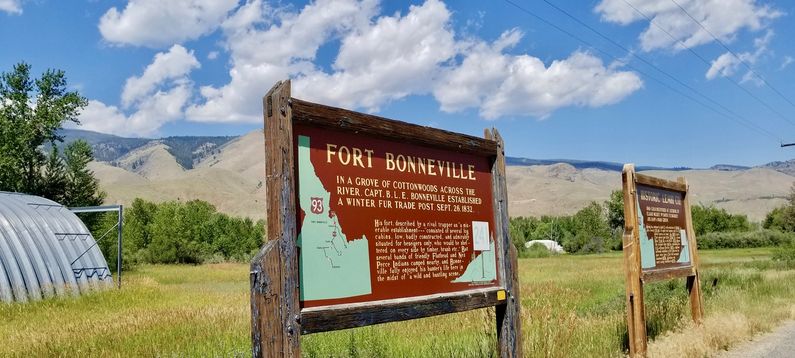 HistoryEstablished by Captain Benjamin L.E. Bonneville, (Cullum 155), and part of his expedition on 26 Sep 1832 as a wintering post during the winter of 1832-1833. After attending the 1832 Green River Rendezvous, Bonneville had cached his goods and wagons, built Fort Bonneville (1) on the Green River and sent three brigades of his men out to hunt for Buffalo and other game to get them through the coming winter. Bonneville and some of his men moved further west into Idaho and established a wintering post along the west bank of the Salmon River near present day Salmon, Idaho. Bonnevlle apparently did not consider this fort to be of permanent value because it was described by others as “a miserable establishment” ... “consisted of several log cabins, low, badly constructed..." Bonneville spent the winter with several bands of friendly Flathead and Nez Perce Indians camped nearby. The post was probably abandoned at the end of the winter season of 1832-1833. Current StatusMarker only on U.S. Highway 93, four miles north of Salmon, Idaho.