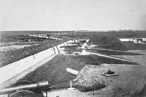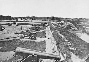 A large U.S. Civil War earthworks fortification begun in September 1861. The fort mounted 13 guns and 1 mortar.
