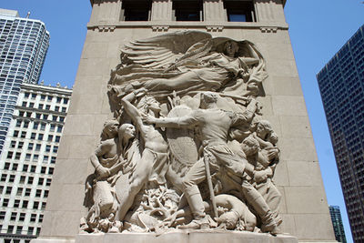 Current StatusThe fort site is an official Chicago Landmark and is commemorated with a Cartouche on the Michigan Avenue bridge and brass site outline markers on the bridge and in the sidewalk. The Fort Dearborn Massacre is commemorated on the southeast pier of the Michigan Avenue bridge.