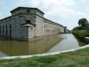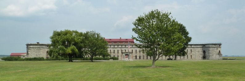 Fort Delaware (1847-1944) - A Third System coastal masonry fort on Pea Patch Island, New Castle County, Delaware. Established on the site of previous fortifications in 1847 and construction continued until 1859. First garrisoned in 1861 at the beginning of the U.S. Civil War by Federal troops, it remained garrisoned until 1870 when the fort was deactivated. The fort was reactivated during the Spanish American War, World War I and World War II. Finally deactivated in 1944. History of Fort DelawarePart of the Harbor Defense of the Delaware. Established on Pea Patch Island to protect the entrance to the Delaware River. The first fortification on the site was an earthwork fort built in 1813 and dismantled in 1821. A second "star fort" was built starting in 1819, and it burned on 8-9 Feb 1831. It was made of sandstone (brownstone) and wooden interior. When it was torn down in 1833, the stone was used to reenforce the sea wall. A dispute between the State of Delaware and the State of New Jersey over the Island was settled and in 1847 Congress appropriated one million dollars for the construction of a Third System masonry fort on Pea Patch Island.