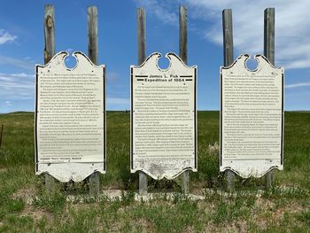 Fort Dilts (1864-1864) - A immigrant wagon train defense established in 1864 during an Indian attack on a wagon train in Bowman County, North Dakota. The attack lasted for 14 days during which the settlers built a sod breastwork while awaiting a relief. Named for Jefferson Dilts, the wagon train scout who was killed during the attack. Abandoned in 1864. Current StatusPart of the Fort Dilts State Historic Site. Traces remain at the site including grave markers, wagon ruts, and remains of a sod wall. in Bowman County, North Dakota. The very handsome monument is made from petrified wood.