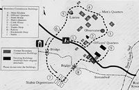 Fort Dufferin (1872-1875) - A Canadian Boundary Commission post established in 1872 as Camp Dufferin by the Canadian Royal Engineers in present day Emerson, Manitoba, Canada. Used by the North West Mounted Police (NWMP) in 1874 to stage their historic march west. Named for Lord Dufferin, then Governor-General of Canada. Abandoned by the military in 1875. HistoryEstablished in 1872 by Captain Donald R. Cameron, chief commissioner of the British North American Boundary Commission Survey as a base camp, winter headquarters and supply depot. The post was built with a single two-story frame officer’s quarters, three one-story buildings, a stable, a storehouse, a cookhouse, a bakery, a workshop, and a smith-shop. The camp was used mostly during the winters when the weather prevented the survey teams from being out in the field.
