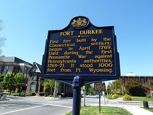 Fort Durkee was established by the Susquehanna company's Connecticut settlers in the spring and summer of 1769. The Connecticut settlers were challenged in January 1771 when the Pennsylvania authorities built Fort Wyoming just 1,000 feet away. The construction of Fort Durkee precipitated the Pennamite War and led to the capture and destruction of Fort Durkee by the Pennamites in 1771.