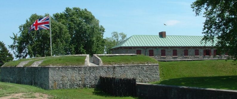 Fort Erie (1764-1823) - First established in July 1764 by British Captain Montresor at the direction of General Bradstreet just after the French & Indian War in present day Fort Erie, Niagara Region, Ontario, Canada. Three different forts of the same name were constructed on or near this site. Finally abandoned in 1823. Early HistoryThe first Fort Erie was built in Jul 1764 by Capt. Montresor as a rectangular loopholed stockade with a bastion at each corner. There were two demi-bastions with rubble masonry walls. Inside the stockade was a parade ground, log barracks, officers quarters and a large storehouse. This fort was built at the edge of the lake and suffered greatly during winter storms. Revolutionary War (1775-1783)The fort became a supply base for British troops, Loyalist Rangers and Iroquois Warriors during the Revolutionary War. In March 1779, a big storm blew a large amount of ice ashore severely damaging and flooding the fort. A second replacement fort (1779-1803) was built just south of the first location, still on the lower level by the water. The new fort lasted until another large storm on 5 Feb 1803 flooded, and severely damaged it. The third Fort Erie was built by the British between 1805 and 1807 on the upper level of a 35' bluff. The new fort was rectangular with a bastions at each corner and connecting walls constructed of solid masonry. The barracks, storehouses and magazine were also constructed of stone. The fort was designed to accommodate 200-300 men.